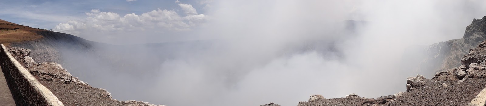 Lago de Managua was nice to finally see up close, though we did not take a swim as it is known to be quite polluted. We started cycling uphill away from the city centre and the lake and, after an hour of uphill a fellow with a pickup stopped and offered us a ride to Masaya. Of course you can't turn down a free ride so we piled our bikes in the back of his truck and up the hill we went. From what we gathered with our poor spanish he was headed to Granada and we had the choice of where we wanted to end up. We took a side trip to Volcano Masay, which was nice because you are not allowed to walk up to the crater because of the sulfer dioxide rising out of the crater. While at the crater you are only allowed to spend five minutes at the edge or you start coughing. They posted signs saying the volcano could start spewing rock and ash any moment and to not to panic. Very reassuring.